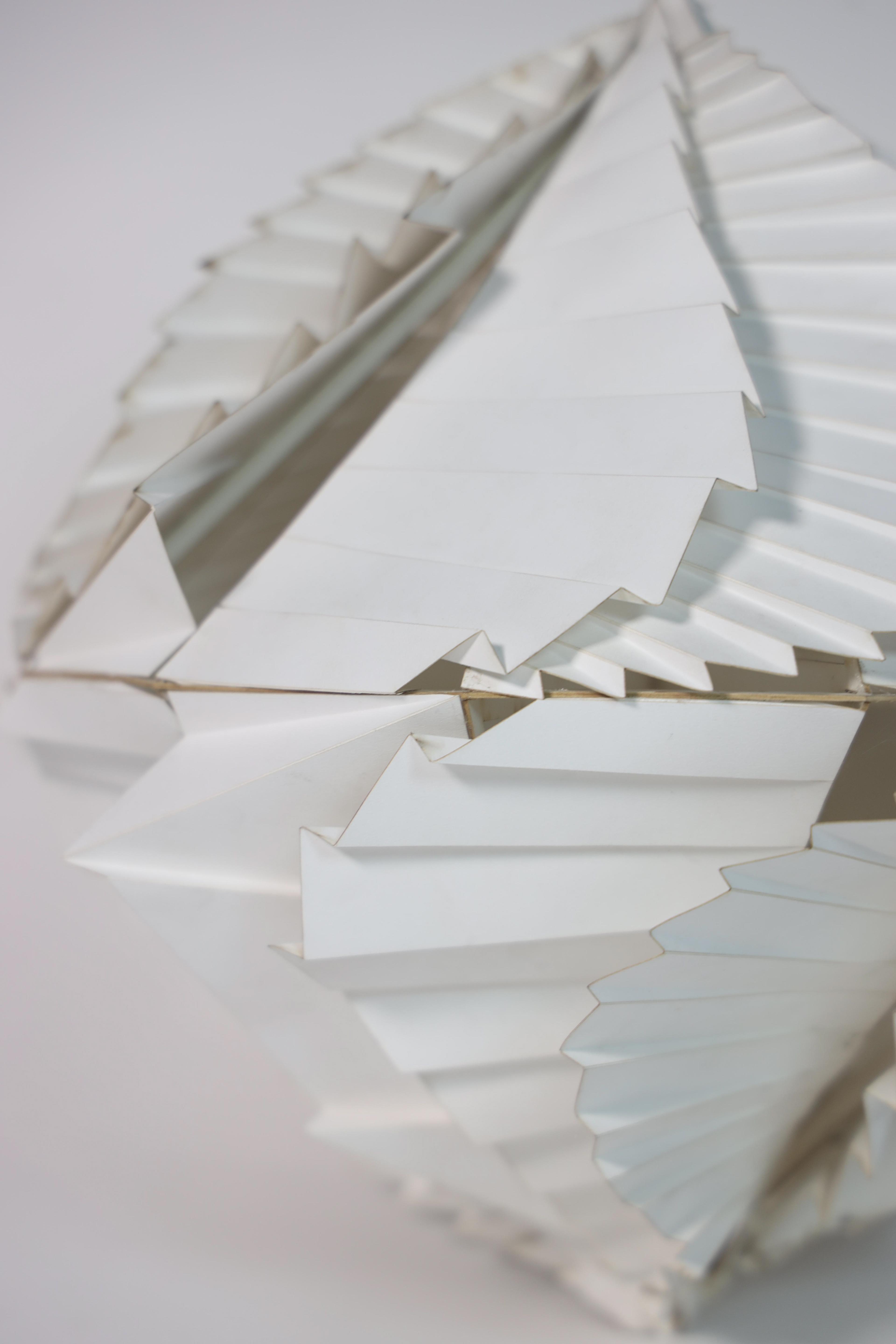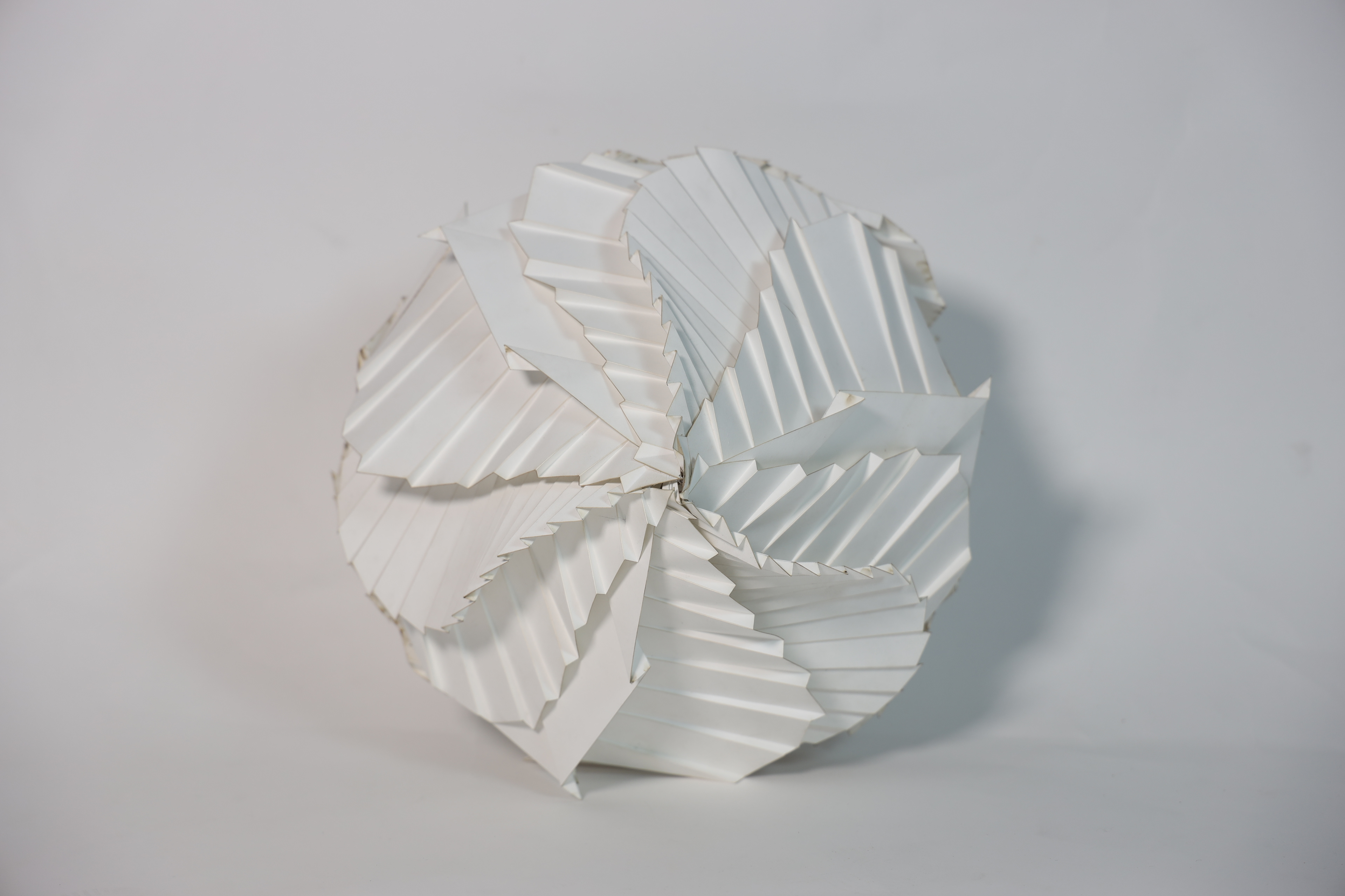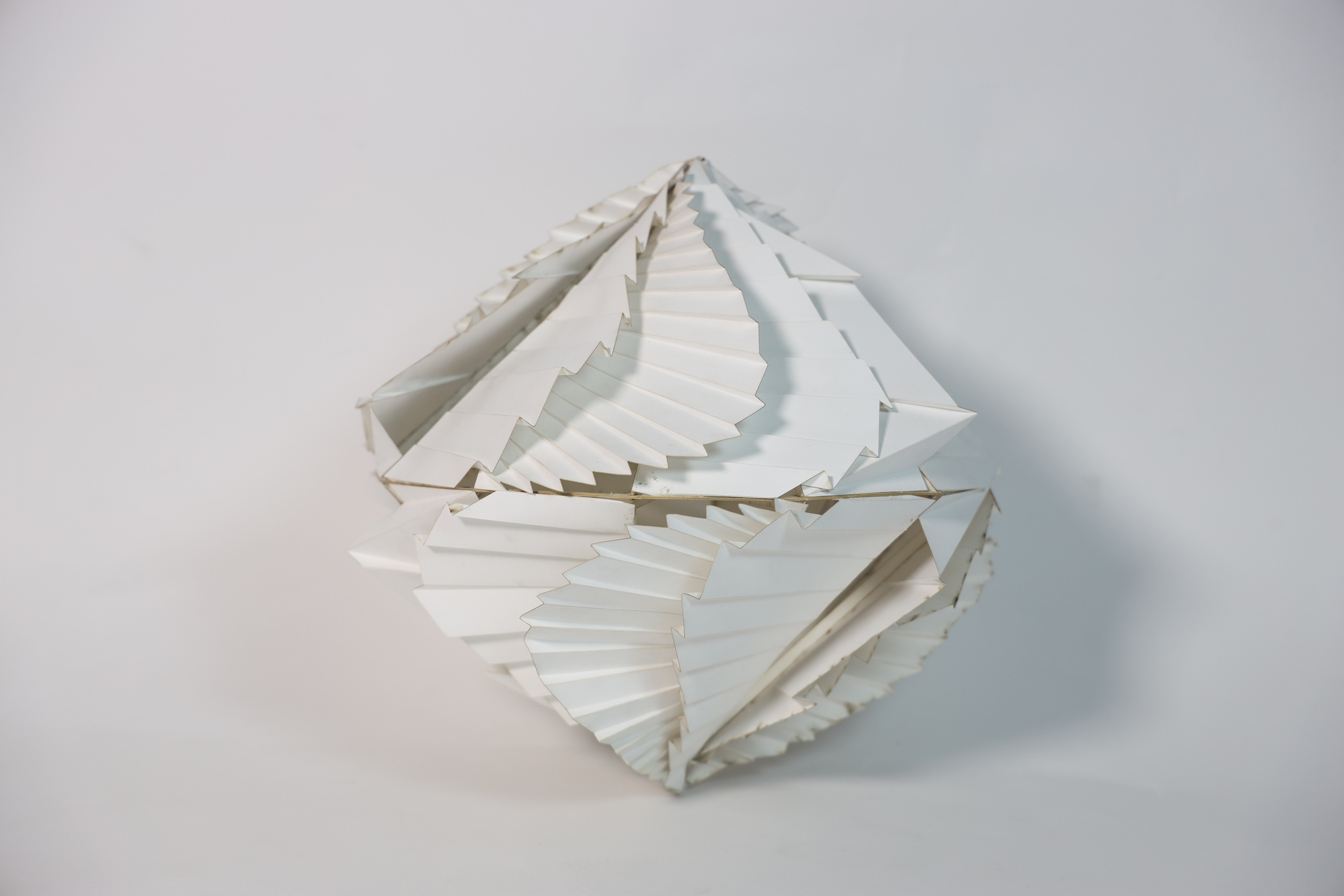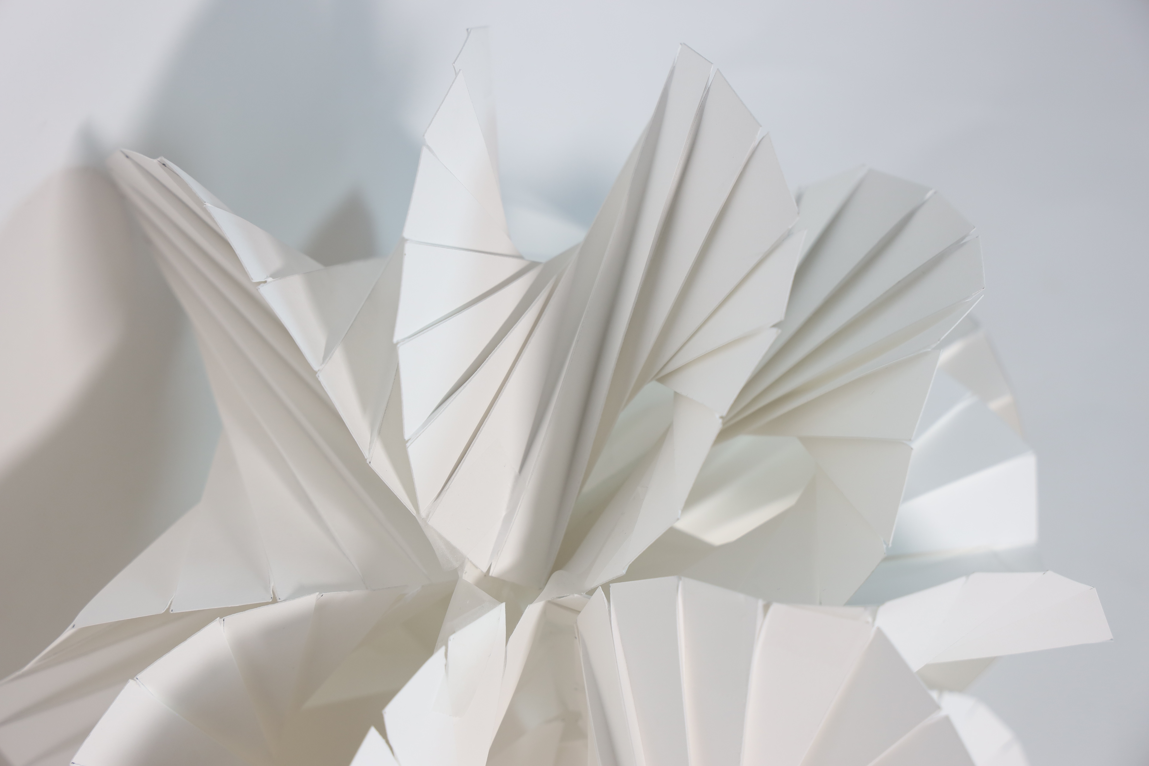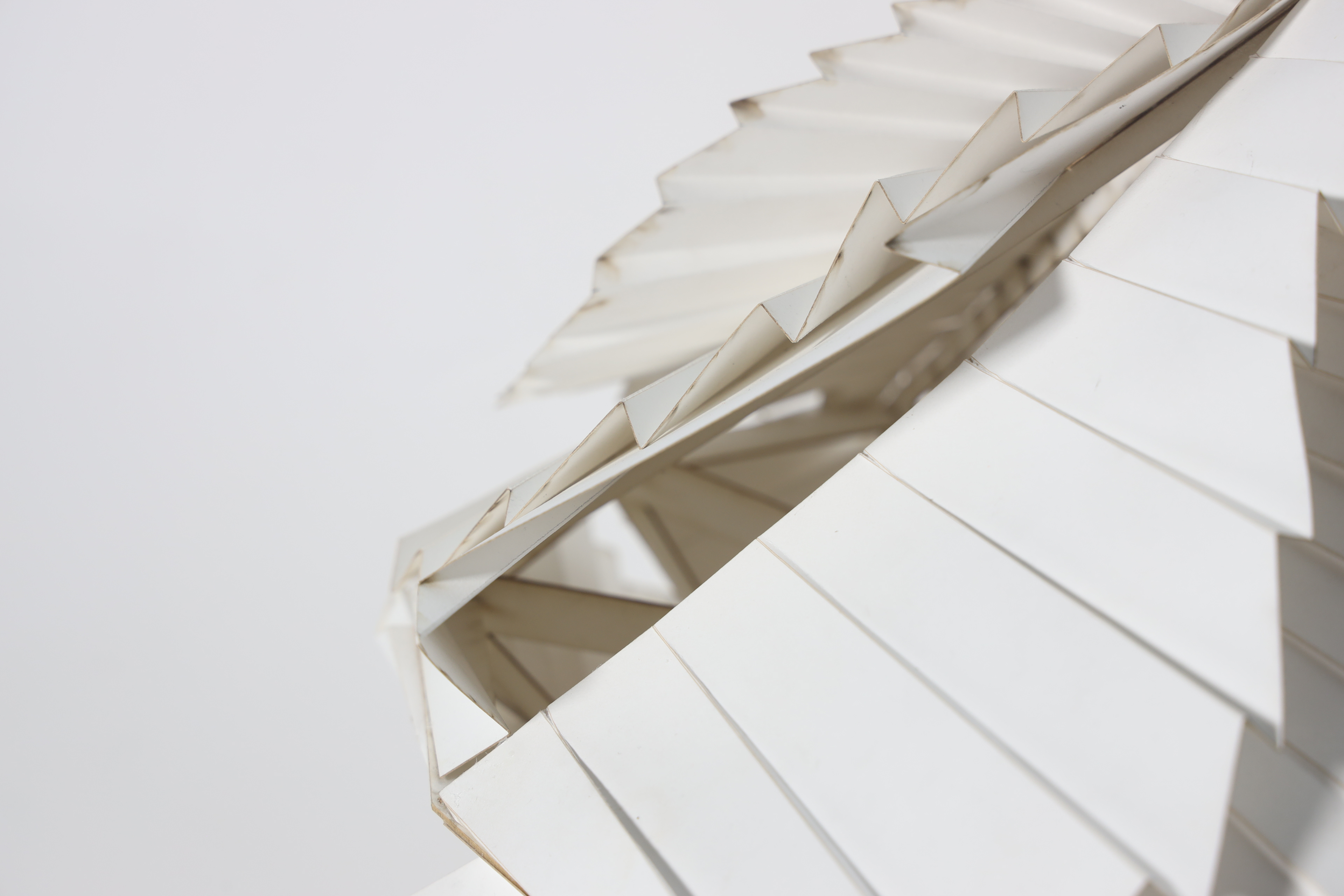 We translated both the property of the wing’s structure and soaring motion with the focus of “fixed centrality”, which in other words, generated a sphere from a central point with sinewave curves. These sinewave curves iterated into double-curvature surfaces, and have variety of resolution.